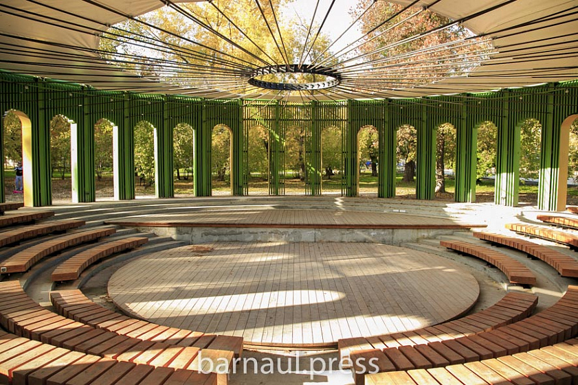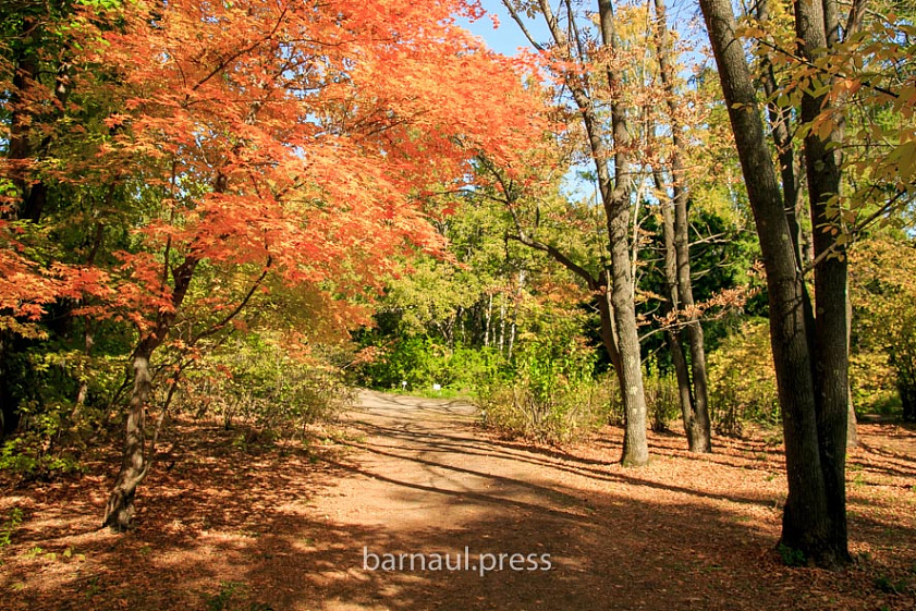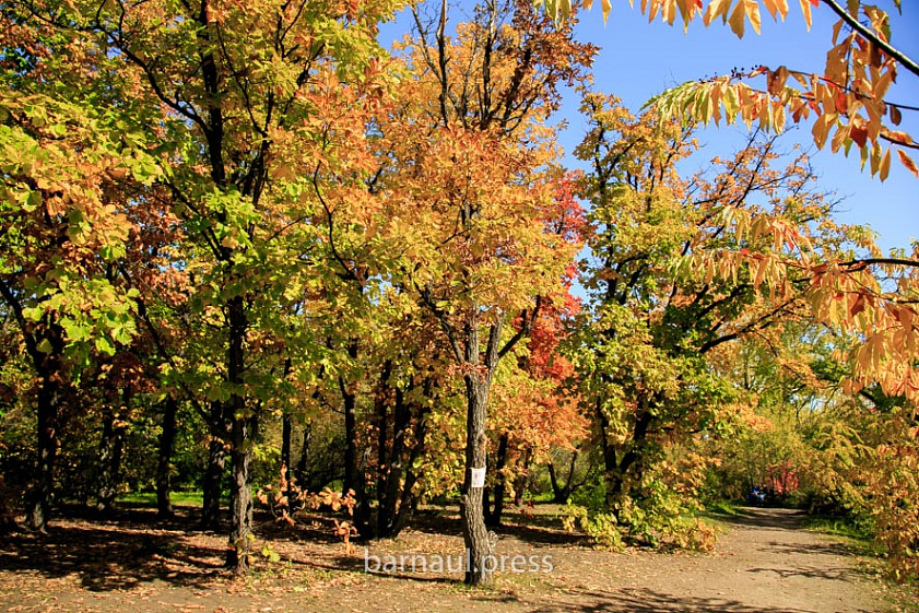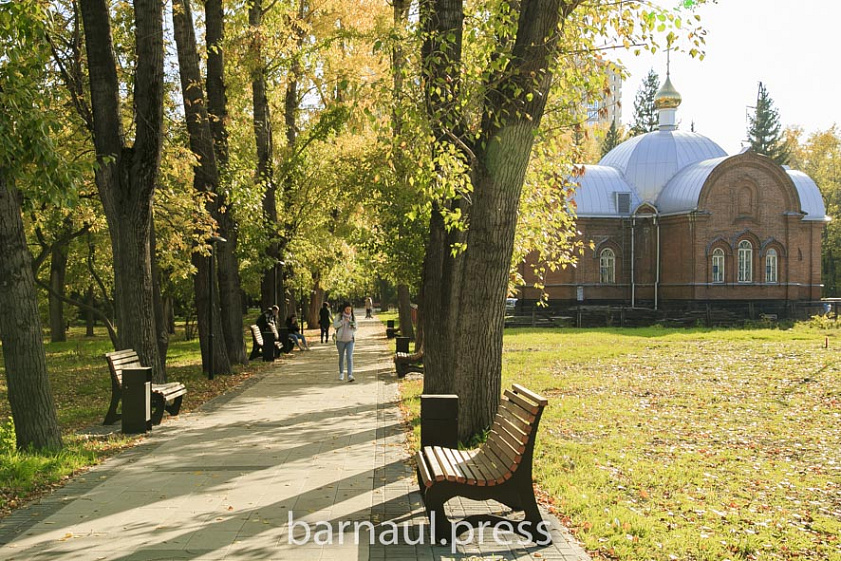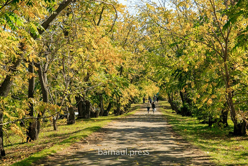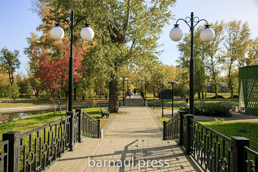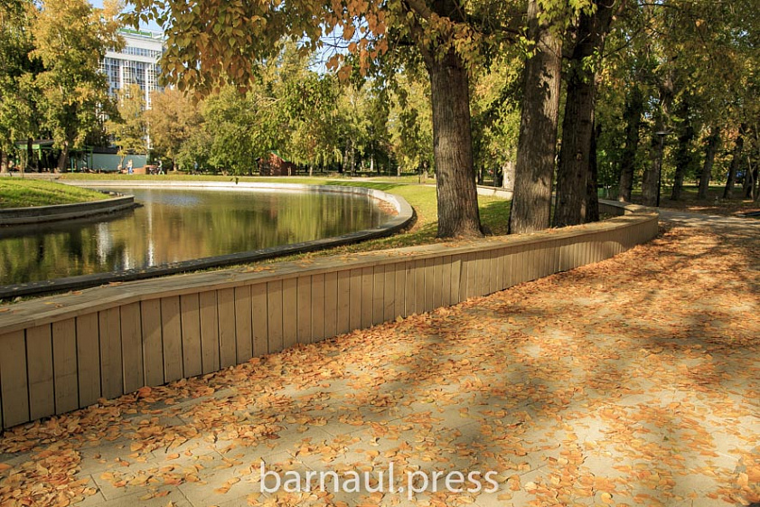 Эта природная ухоженная территория привлекает барнаульцев в любое время года. Однако осенью, когда воздух прозрачен, а деревья желтеют, снимки на фоне зданий театра и краевой администрации получаются особенно красивыми.