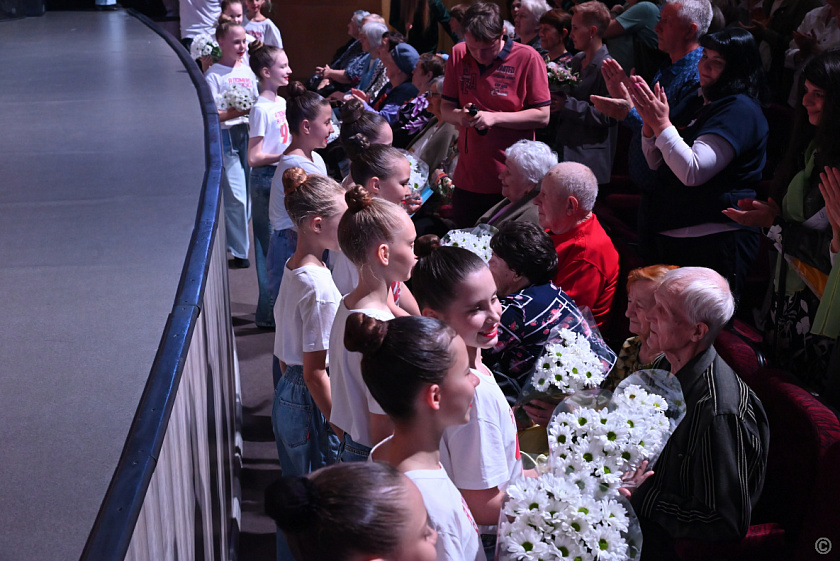 В зале присутствовали ветераны Великой Отечественной войны, труженики тыла и дети войны, чьи судьбы неразрывно связаны с подвигом народа. Им выразили особое почтение. Также Оксана Финк поблагодарила родителей, бабушек и дедушек, которые водят детей на репетиции, и отметила ребят, которые языком танца продемонстрировали силу России.