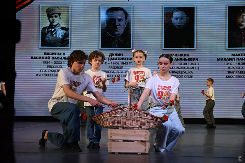 В завершении мероприятия танцоры выстроились в своеобразный «Бессмертный полк» на фоне фотографий своих дедов и прадедов. Накануне празднования Дня Победы дети возложат цветы к Мемориалу Славы, сообщается на официальном сайте Барнаула.