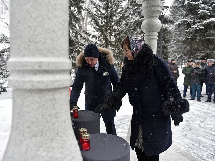 Память героев сегодня почтили губернатор Алтайского края Виктор Томенко, председатель Алтайского краевого Законодательного Собрания Александр Романенко, глава города Вячеслав Франк, главный федеральный инспектор по региону Юрий Земский, председатель Барнаульской городской Думы Галина Буевич, а также руководители силовых структур, депутаты, представители общественных организаций, ветераны боевых действий, волонтёры и участники военно-патриотических клубов. Они возложили цветы к скульптурной группе «Прощание», монументу кавалеров орденов Славы и «Золотая Звезда», а также к пантеону с именами павших воинов.