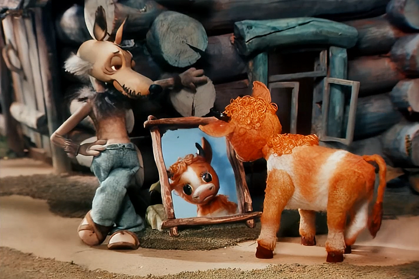 Кстати, Волка в мультфильме озвучивал Олег Табаков — кот Матроскин всея Руси российской мультипликации. Получилась поучительная история о том, что не тот отец, что родил, а тот, кто воспитал! Всё как у людей! Кстати, Волк в мультфильме — отец немолодой. У него седая морда, клочки шерсти торчат из ушей, словно жизнь его хорошо потрепала, однако отцовство меняет персонажа.
