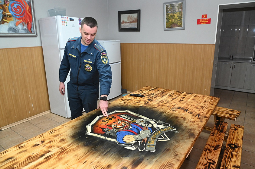 Пожарные называют часть своим вторым домом. Так как они проводят здесь целые сутки, то обеспечены всем необходимым и заботливо поддерживают уют. На столе в кухне изображен герб пожарно-спасательной части, а на нем знаковые здания в районе выезда – Шпиль и «Аквамарин», год образования подразделения – 1869. С пожарно-спасательной части № 1 началась история пожарной охраны Алтайского края, это было первое подразделение в крае, хотя раньше находилось по другому адресу.