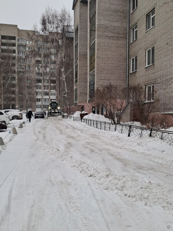 Дворы и внутриквартальные проезды, а также кровли многоквартирных домов очищают от снега во всех районах Барнаула.