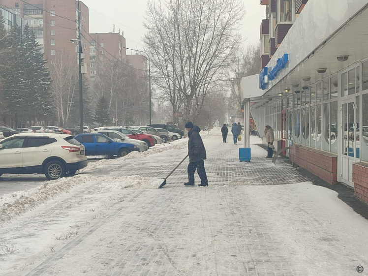 Торговые центры и предприятия потребительского рынка Барнаула активно очищают прилегающие территории и парковки от снега. Входные узлы и пешеходные зоны обрабатывают песком, солью или реагентами.