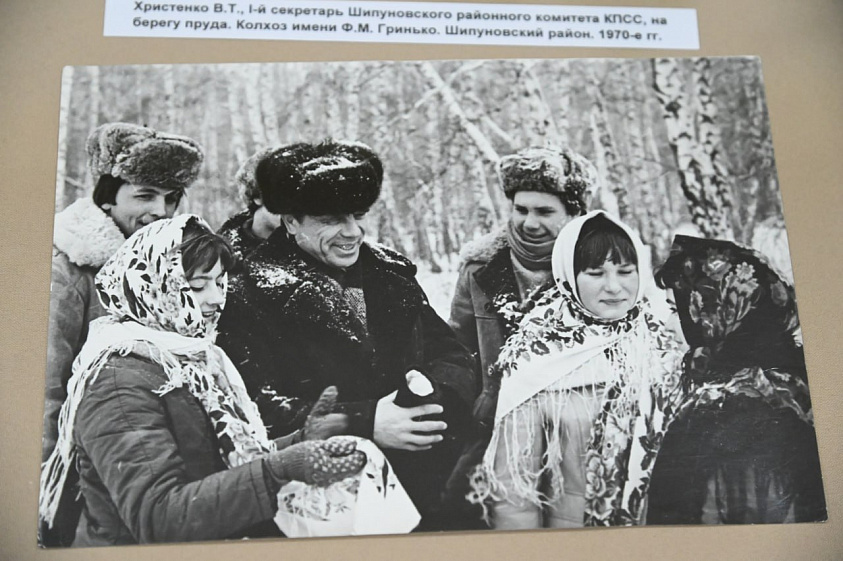 На открытие выставки приехала целая делегация из Шипуновского района, который на протяжении 15 лет возглавлял Василий Христенко. По его инициативе здесь появились Аллея Героев — уроженцев Шипуновского района, мемориал солдатам. Во время его руководства в Шипуновском районе выращивали небывалые урожаи зерна, за что Василий Тимофеевич был удостоен звания Героя Социалистического Труда. Заместитель главы администрации Ольга Синцова передала в дар библиотеке им. В.Я. Шишкова статуэтку Шипуновской детской школы искусств, носящей имя В.Т. Христенко.