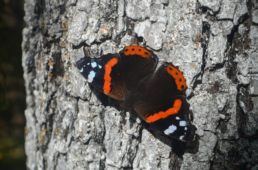 Бабочка-адмирал, последняя в этом сезоне, подарила прощальный привет осени. Насекомое сфотографировали в Алтайском биосферном заповеднике.