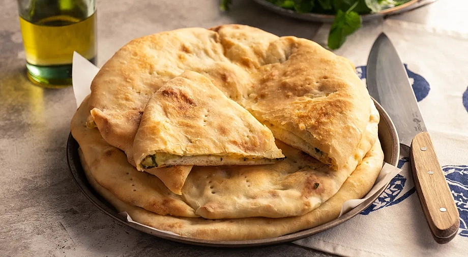Очень вкусная и уютная выпечка, которая прекрасно утоляет голод и тоску по традиционной грузинской выпечке с сыром. Вместо сыра здесь — картофельное пюре, «обогащённое» карамелизованным луком, зеленью и кавказскими специями.