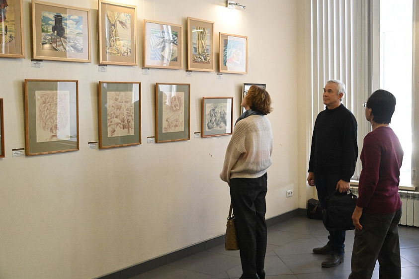 В выставочном зале музея на 150 квадратных метрах развернулась целая вселенная, созданная воображением мастера, — это более 90 графических и живописных произведений, каждое из которых — отдельная история, рассказанная в технике уникальной авторской эстетики. В работах художника смело сочетаются фантазийные мотивы и реализм, достоверность и вымысел на грани сюрреализма. От этого сюжеты кажутся ещё более головокружительными и расширяющими привычные рамки восприятия мира.