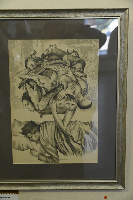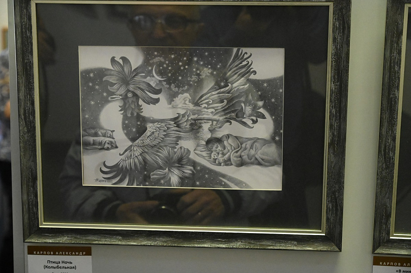 — Александр Александрович был очень знаковой фигурой в 90-е годы прошлого столетия, — рассказал Михаил. — Он художник и поэт, музыкант и неуловимый немножко. Мне кажется, что в своих работах Карпов создаёт энциклопедию с образом человека в этой вселенной. А ещё он удивительный рассказчик о жизни в своих работах, каждая как маленький мир, в котором можно много что рассматривать, изучать, интересоваться.