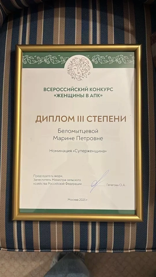 Подведение итогов конкурса и награждение победительниц состоялось на Российской агропромышленной выставке «Золотая осень». В рамках этого конкурса Минсельхоз России традиционно отмечает лучшие женские инициативы, направленные на развитие агропромышленного комплекса и сельских территорий страны. В финал конкурса «Женщины в АПК» в этом году вышли 20 участниц, серди них Марина Беломытцева, сообщает телеграм-канал Минсельхоза Алтайского края.
