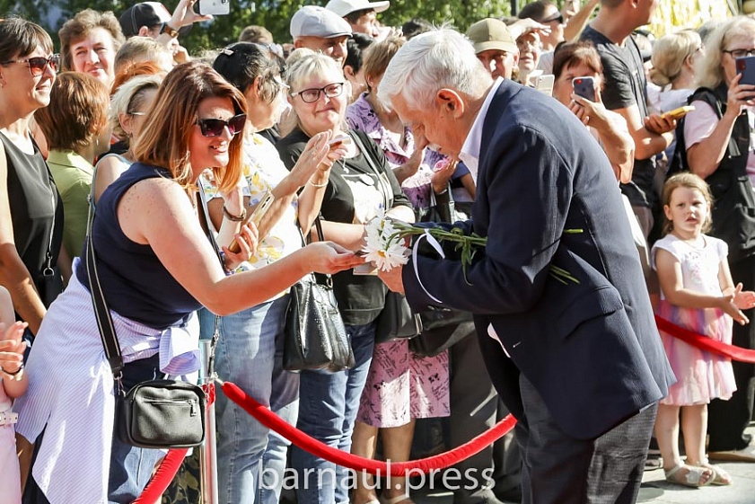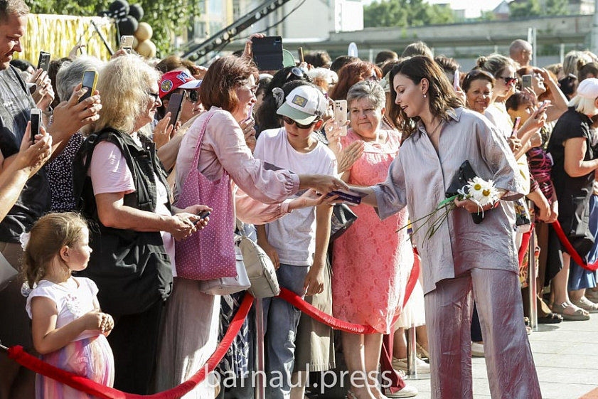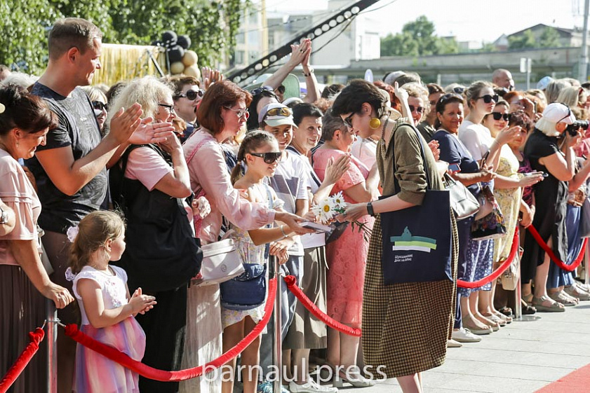 Сотни жителей краевой столицы собрались 23 июля у Алтайского краевого театра драмы, чтобы поприветствовать участников фестиваля — известных актёров, режиссёров, писателей, мультипликаторов, хореографов и других деятелей искусства. Каждого, кого представляли ведущие — Вера Климанова и Сергей Попович, горожане приветствовали бурными овациями. Тем, кто занял место в первом ряду, удалось даже сделать памятные селфи со знаменитостями и взять у них автографы. Всех гостей и участников фестиваля на крыльце театра приветствовали губернатор Алтайского края Виктор Томенко и министр культуры Елена Безрукова.