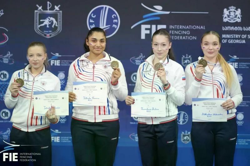 Вместе с саблисткой из Алтайского края Марией Третьяковой за сборную России выступали Малена Кунашева, Александра Михайлова и Карина Таллада. Эта победа — первая за последние восемь лет.