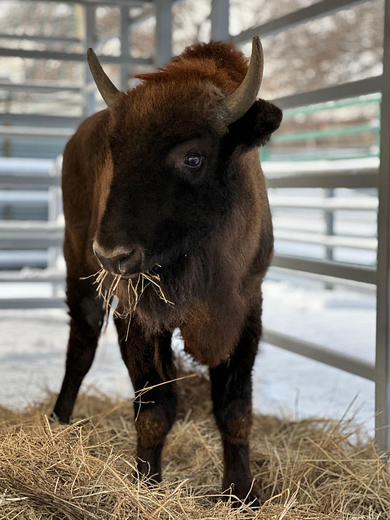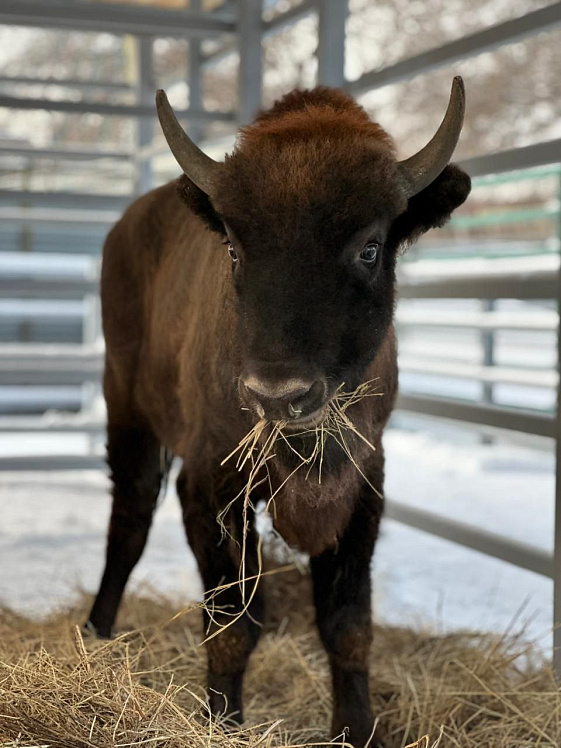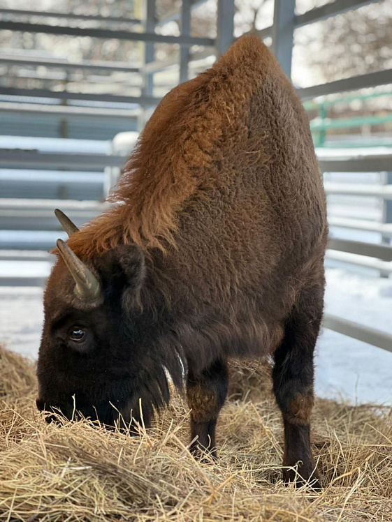Зубр в прекрасной форме, у него густая, красивая шоколадно-рыжеватая шерсть. И мороз, который пришёл в регион, ему явно по вкусу — свежо и бодряще. Мураш с удовольствием обживает новый дом.