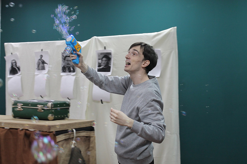 Сегодня полным ходом идут репетиции нового спектакля. Специально для этого в Барнаул приехала Валерия Телегина — актриса и педагог екатеринбургского театра «Жёлтый квадрат», режиссёр Центра современной драматургии, а также Свердловской филармонии. Она уже поработала с текстами, написала на их основе сценарий и теперь ставит сказку с артистами, придумывает декорации и вплетает специально написанную к этому спектаклю музыку в сюжет.