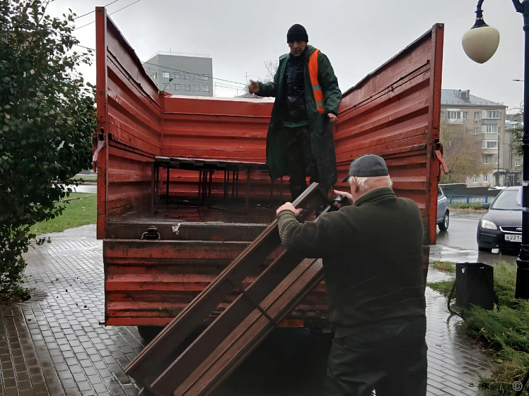 напомнили, что такие работы проводят каждый год. Это нужно, чтобы скамейки не разрушились из-за осадков и противогололёдных реагентов и срок их службы был больше. Кроме того, так зимой снегоуборочная техника работает более оперативно.