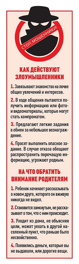 Во время такого общения подростков должен насторожить ряд вещей: во-первых, солидные для его возраста гонорары за незначительные задания вроде отправки фотографий; во-вторых, требования соблюдать секретность и никому не рассказывать ни о заданиях, ни вообще о новом знакомстве.
