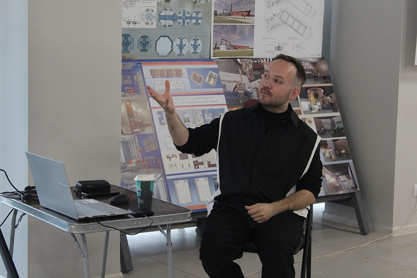 Геннадий Осташов профессионально работает в области сценического костюма более 10 лет, он член Союза дизайнеров РФ, художник по костюму Государственного молодёжного ансамбля песни и танца «Алтай» им. А.Ф. Березикова, выпускник ИнАрхДиз. Во время лекции он поделился своими методами проработки костюмов для сценических образов с сегодняшними студентами института.