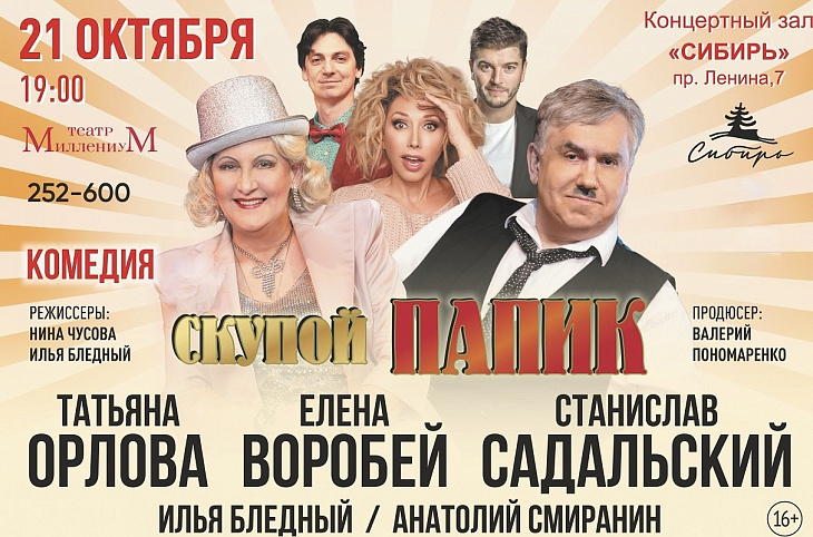 В постановке известного театрального режиссёра Нины Чусовой заняты Станислав Садальский, Елена Воробей, звезда сериала «Папины дочки» Татьяна Орлова, а также Илья Бледный/ Анатолий Смиранин.
