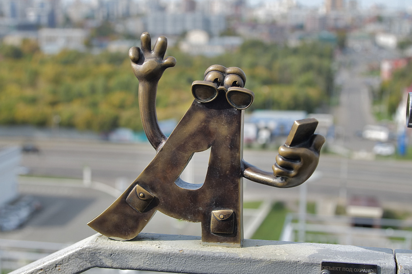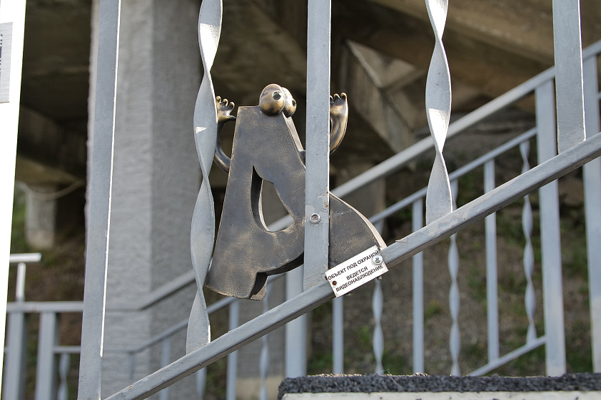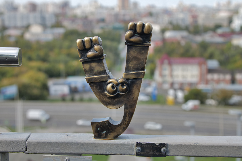 Визитная карточка Барнаула — огромные буквы на въезде в город. Они вдохновили мастеров на создание уникальных бронзовых арт-объектов. Девять букв установили в историческом центре, ещё семь — на лестнице, ведущей в Нагорный парк. Они будто спускаются со склона в город.