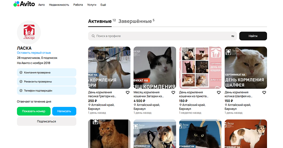 Поддержать проекты приюта и оказать помощь теперь можно через портал «Авито».