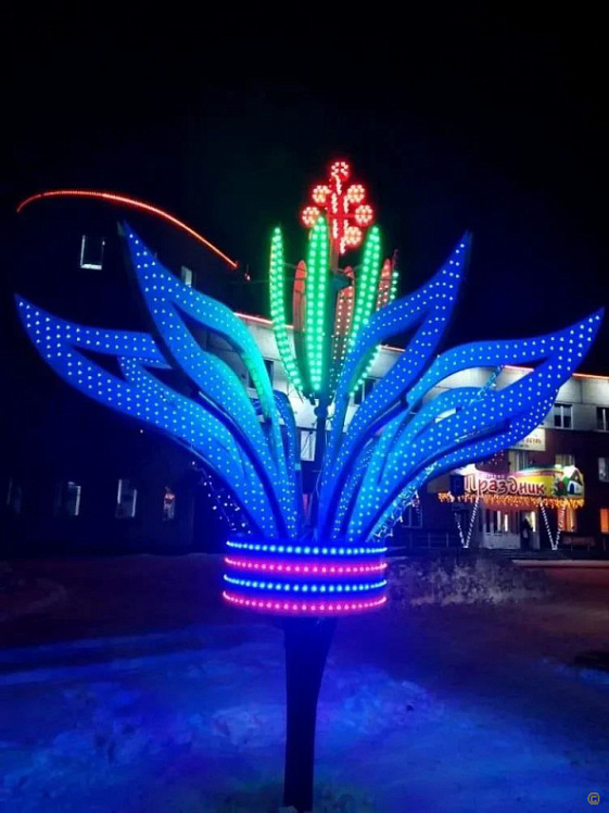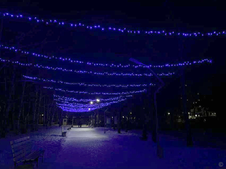 Этот район украсили эффектные световые инсталляции. Акцентными точками оформления стали светодиодные фонтаны: