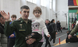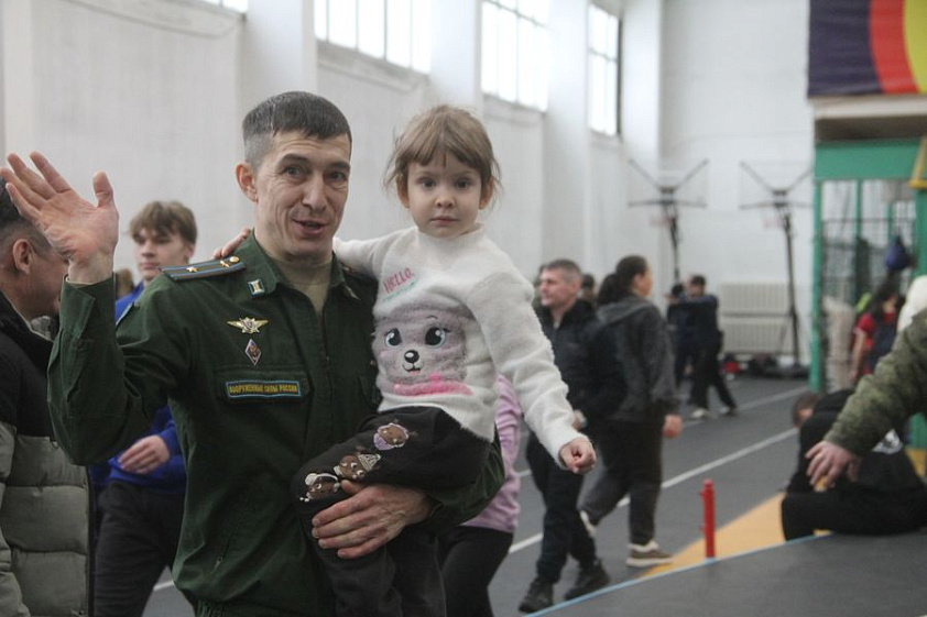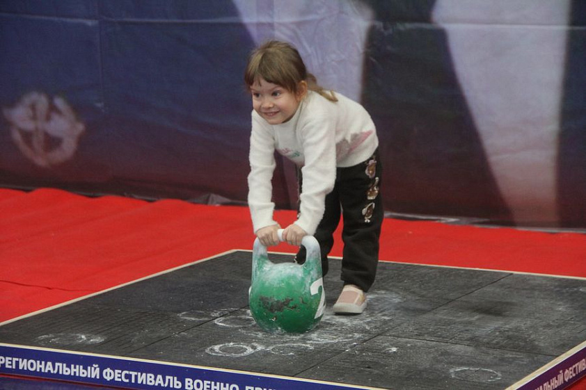 От гражданских армейские соревнования отличаются правилами — спортсмены выходят в военной форме, на упражнение — 12 минут, можно неограниченное количество раз менять руку. Представителя ВКС, барнаульца Сергея Степанова пришла поддержать семья. Это помогло: гиревик стал вторым в своей категории. Дочкам тоже было интересно: младшая Алиса тут же попыталась поднять 32-килограммовую гирю, а старшая Николь заинтересовалась проходящим по соседству панкратионом.