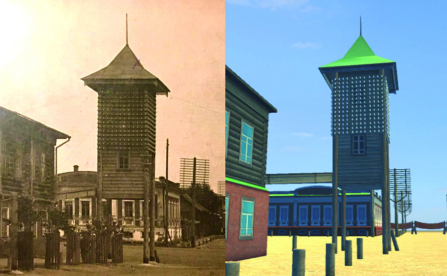 В демоверсии приложения обновилась биржа извозчиков, располагавшаяся напротив нынешнего музея «Город». Двухэтажное деревянное здание смотрится немного несуразно из-за большего, чем нижний, размера второго этажа. В свое время краевед Алексей Челомбитко обнаружил документ, в котором говорилось о деревянном колодце на Московском проспекте с пометкой «сгорел» в пожаре 1917 года. Скорее всего, второй этаж надстроили над колодцем, воду из которого использовали, чтобы поить лощадей.