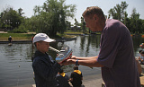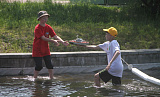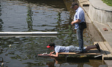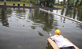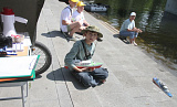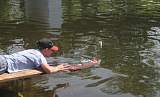 Запускают модели спортсмены, ложась на живот прямо на пирс. Целятся, как в бильярде. В арсенале у них четыре попытки, в зачет идут три лучшие. Дима Силин из села Красногорского трижды попал чётко в центр.