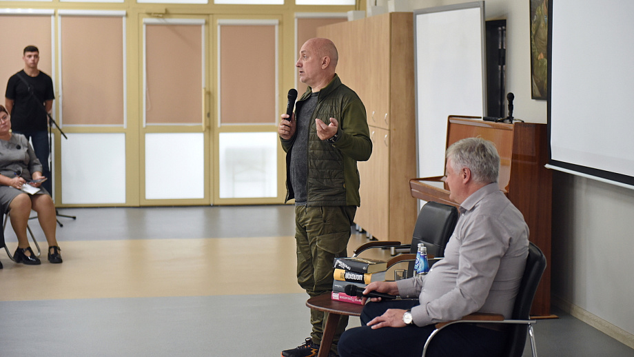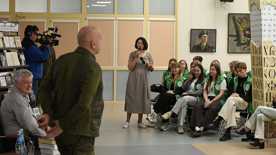 «Литература — хранитель сознания нации, её кода как такового. Как бы мы ни говорили, что мир изменился, стал другим, значение того же стихотворения Лермонтова „Бородино“ продолжает быть ценным. Ведь все мы с вами состоим из литературы. Мы — нация Пушкина, Толстого, Достоевского. И всё это вшито в нас».В ходе встречи Захара Прилепина спрашивали и о головокружительном успехе романа «Обитель», который вышел в свет в 2014 году и тут же снёс весь книжный рынок, о сравнительно недавней книге «Собаки и другие люди», где главные герои — псы самых разных пород, а само повествование строится вокруг вечных тем о любви и преданности.