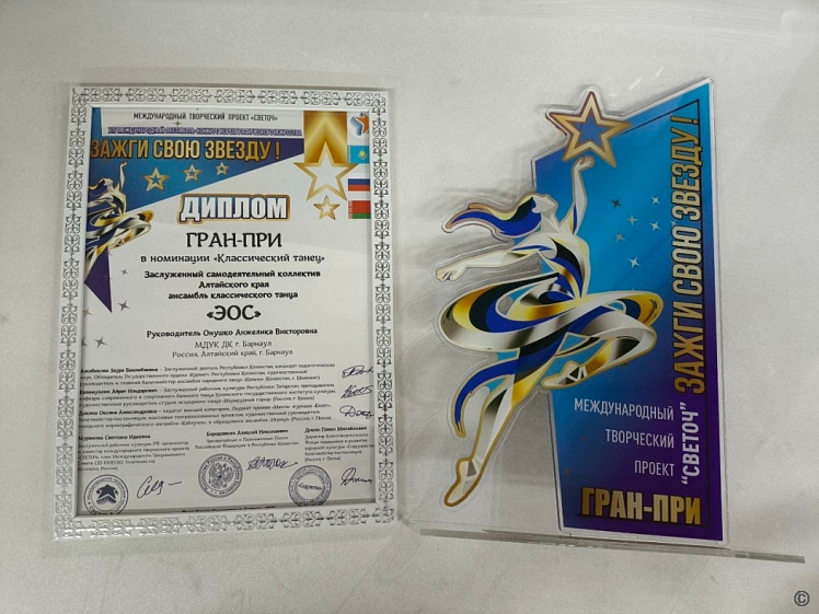 Ансамбль классического танца Дворца культуры Барнаула «Эос» под руководством Анжелики Онушко выступил на XIV Международном фестивале-конкурсе хореографического искусства «Зажги свою звезду» и по результатам мероприятия завоевал Гран-при.