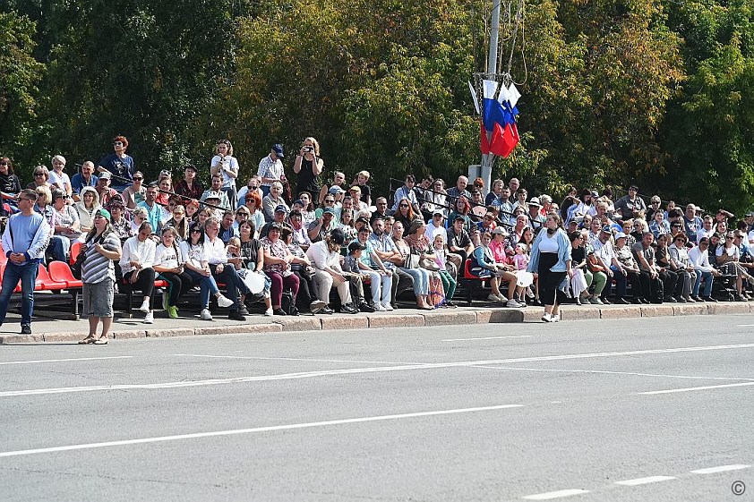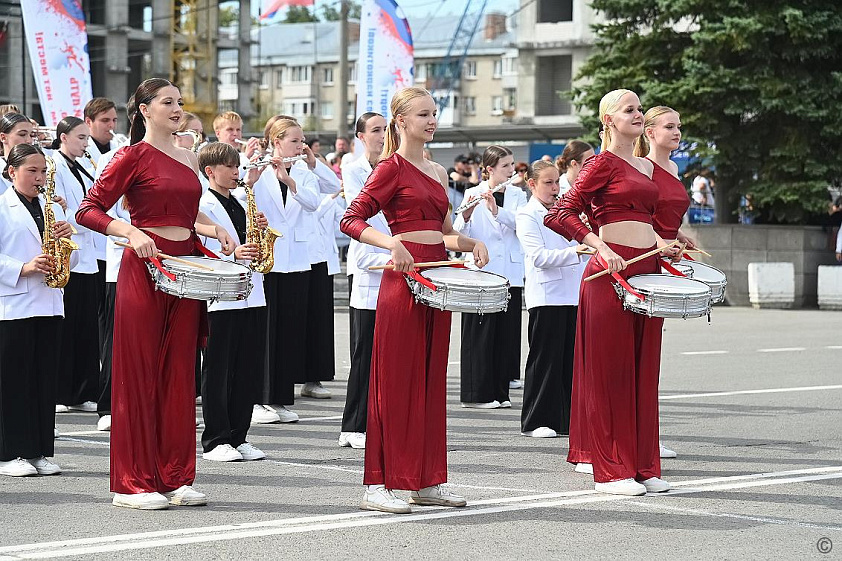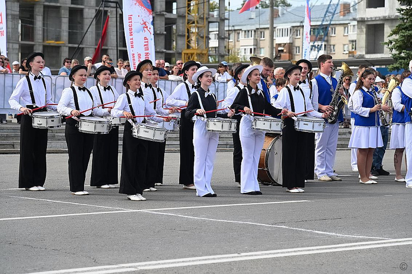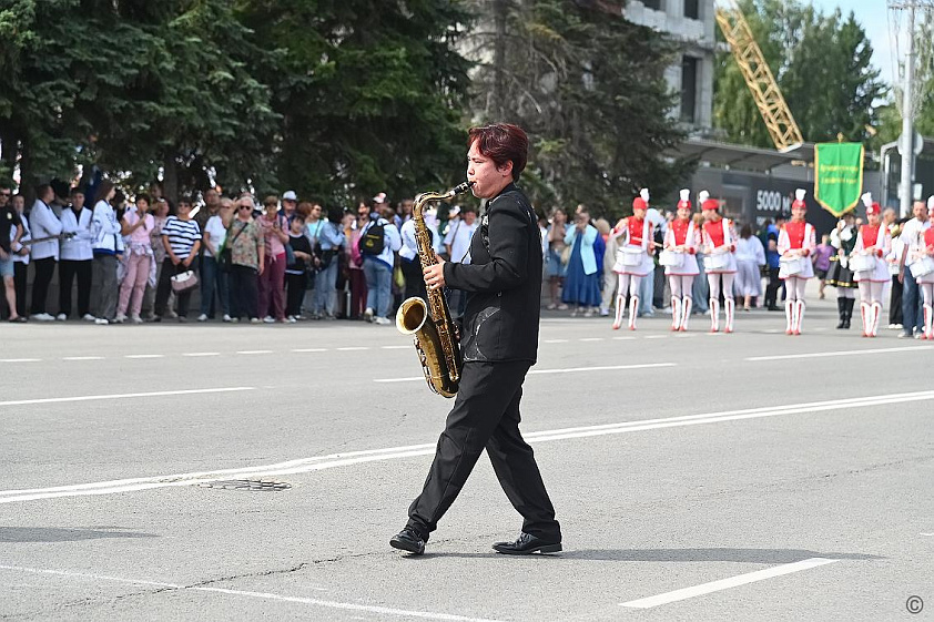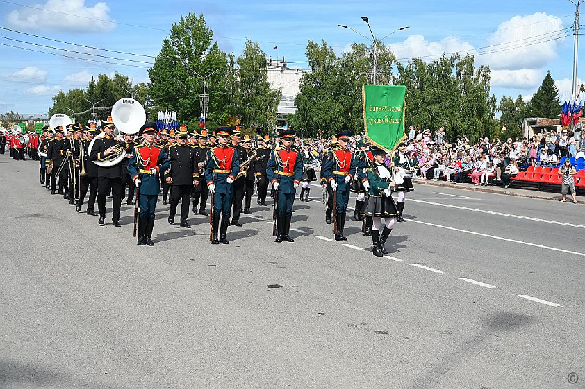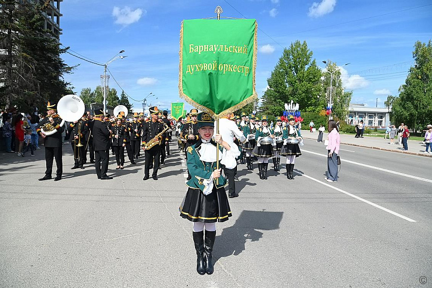 Полные трибуны, сотни барнаульцев, стоящих вдоль проезжей части, на которой в ожидании начала выступления в парадном строю замерли музыканты. Хотя фестиваль духовых оркестров в краевой столице проходит уже в четвёртый раз, горожан интересовало всё: костюмы, откуда приехали музыканты, почему так много барабанщиц.