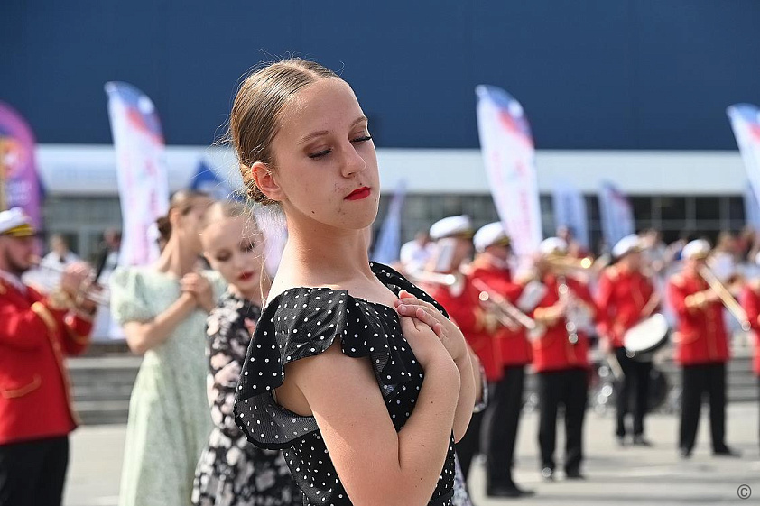 Очень тепло зрители встретили выступление духового оркестра правительства Республики Тыва. Музыканты показали не только виртуозное владение инструментами, но и станцевали для зрителей. Бурных аплодисментов удостоился и духовой оркестр Луганской государственной академии культуры и искусств им. Матусовского. Под русские народные песни гости показали, что для них плац-концерты — дело привычное, музыканты хорошо двигались, естественно вплетая танцевальные движения в такие песни, как «Барыня», «Маруся» и другие. Вход пошли даже несложные акробатические фигуры, а также флаг ЛНР. Невозможно не отметить выступление образцового духового оркестра Rhythm Band барнаульской ДШИ №8, чье выступление было отмечено очень пластичными мажоретками в красных костюмах. «За своих» болели все зрители, поддержка заключалась даже в том, что со зрительской трибуны выбежал малыш, поднял упавшую барабанную палочку и передал одной из барабанщиц.