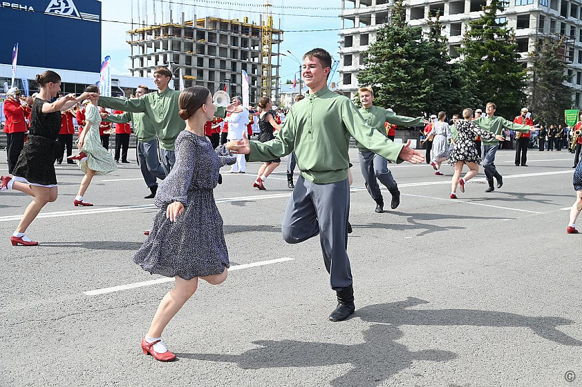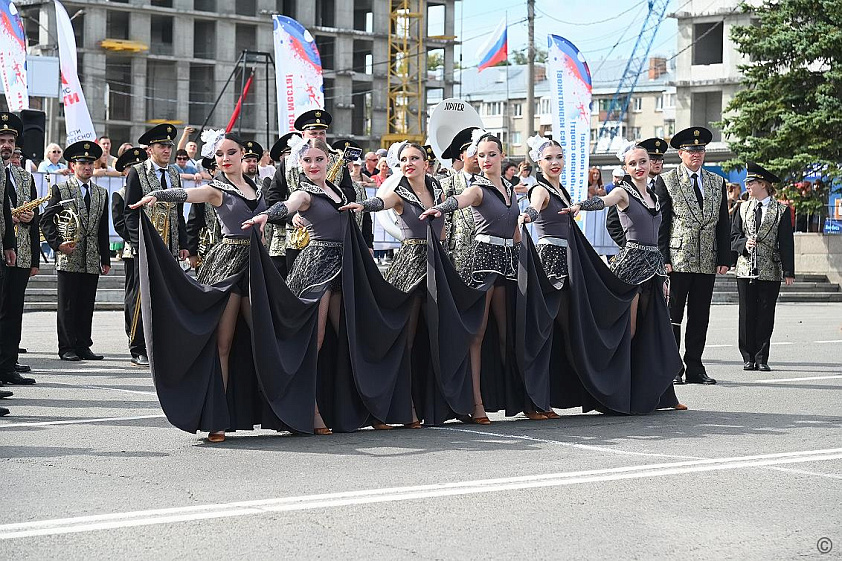 В плац-концерте участвовали коллективы из Новосибирска, Новокузнецка, Кызыла, Абакана, Юрги, Барнаула, Рубцовска, ЗАТО Сибирский и села Усть-Калманка. После выступления музыканты разошлись по основным праздничным площадкам, в числе которых набережная Оби, Нагорный и Центральный парки, пешеходная Мало-Тобольская улица.
