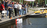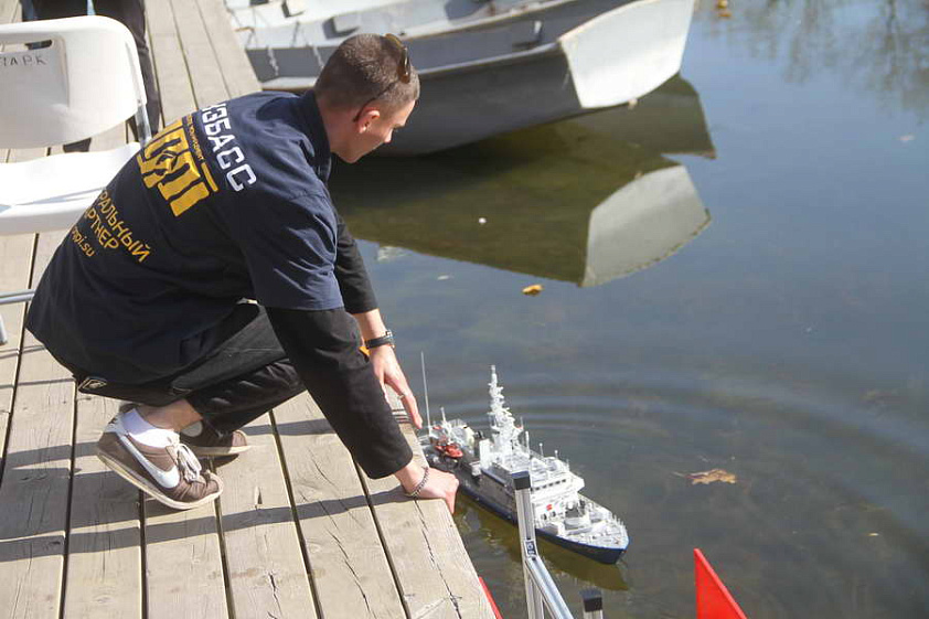 «Здесь представлено очень много сильных моделей, — говорит Денис Петров. — Сильная модель — это та, которая качественно сделана и демонстрирует отличные ходовые качества. Тут нельзя отдавать чему-то приоритет, может быть идеальная сборка, но плохое движение. Или наоборот — прекрасный ход, но несоответствие чертежам».Как раз сейчас дистанцию проходит судно, кренясь на правый борт. Денис Петров поясняет: не выровняли груз внутри перед запуском или съехал аккумулятор. Недочётом на дистанции это не является, но управлять таким судном труднее.