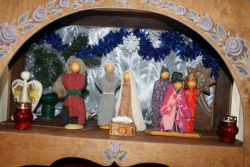— Постепенно вертепом стали называть ящик, в котором размещена, как правило, двухъярусная сцена, олицетворяющая верхний мир — Вифлеемскую пещеру, где обитают статичные куклы: ангелы, пастухи, волхвы, Иосиф, дева Мария, младенец Иисус, и мир земной, где разыгрывается сюжет о царе Ироде с помощью подвижных кукол, – рассказала научный сотрудник ГМИЛИКА Татьяна Джумига. — Суть этой постановки в том, что царь Ирод, узнав от волхвов о рождении Иисуса Христа, принял его за своего конкурента, претендующего на престол, и решил новорожденного убить. В итоге Ирод приказал избить в Вифлееме всех младенцев. С просьбой помиловать свое дитя к Ироду обращается Рахиль, но ее мольбы так и остались не услышаны. Однако за свои злодеяния царь платится жизнью: Смерть отрубает ему голову, а черти тащат в ад. Тем самым добро торжествует.
