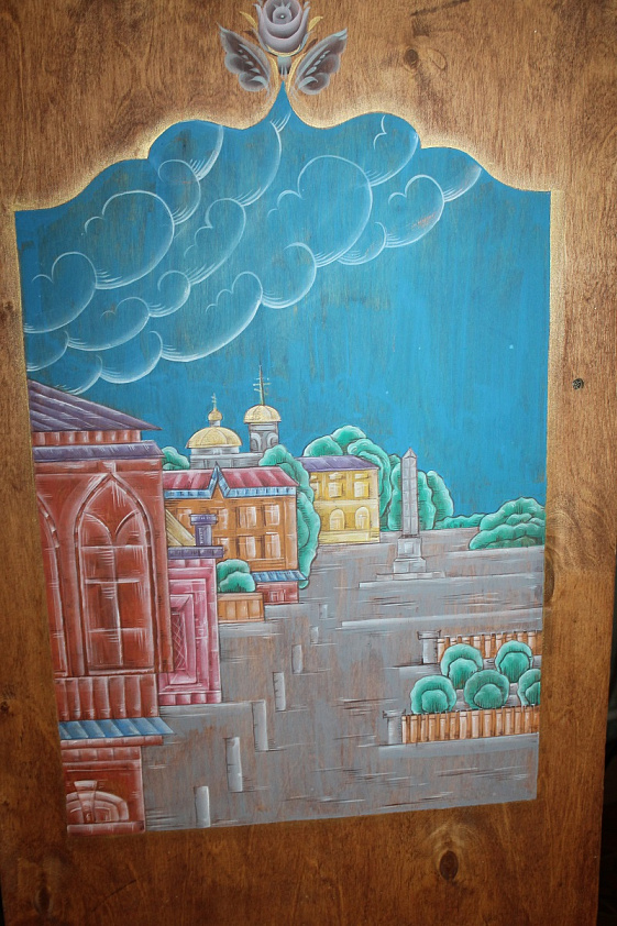 — Именно Елена Леонтьева придумала украсить створки ящика не только вифлеемскими сюжетами, но и видами Барнаула, — пояснила Татьяна Джумига. — Здесь можно увидеть один из символов города — архитектурный ансамбль Демидовской площади, а также вид на реку Обь.