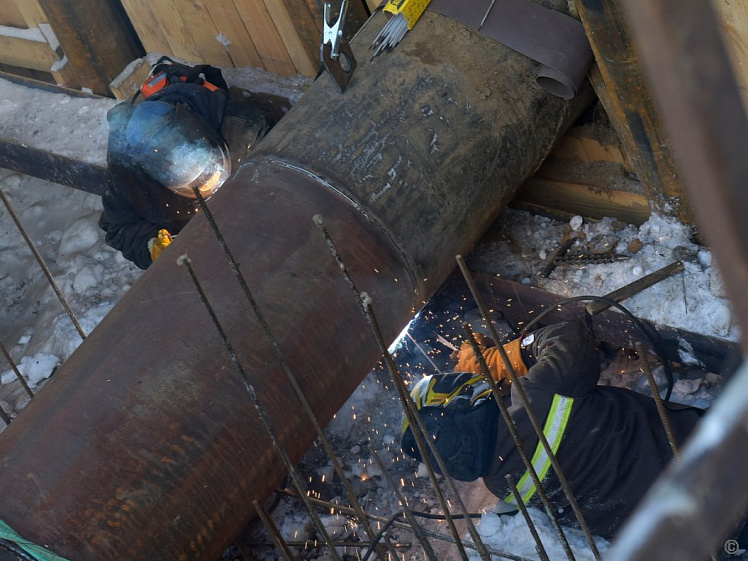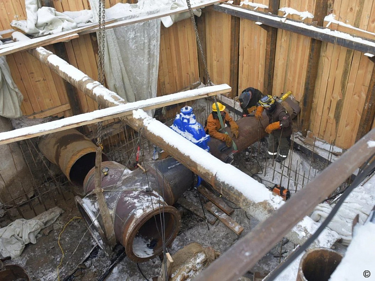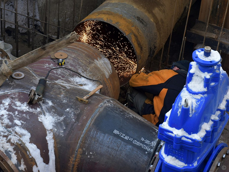 За ночь рабочим удалось закрыть запорную арматуру диаметром 200, 500, 600 и 800 мм на необходимых для проведения врезки нового водовода участках и провести опорожнение коммуникаций. К 6 часам утра они закончили демонтажные работы и приступили к монтажу новых частей трубопроводов. На данный момент специалисты занимаются запорной арматурой, фасонными частями в водопроводных камерах.