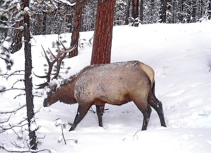 В телеграм-канале Алтайского биосферного заповедника поделились фотографией марала в заснеженном лесу. Там также рассказали, что у этого подвида благородного оленя есть свой «зимний враг».