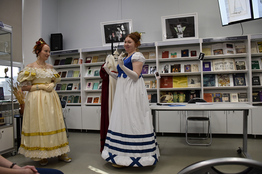 Большое число зрителей собрала лекция преподавателей студии старинного танца «Северная сторона», где одним из спикеров стала корреспондент газеты «Вечерний Барнаул» Светлана Ермошина. От неё можно было узнать о разнице между реконструкцией и стилизацией исторических костюмов, о разных традициях в одежде, характерных для пушкинской эпохи, а также о том, как выглядели вердепомовый и блё-раймондовые оттенки известных цветов, что такое парюра и фероньерка и чем тиара отличается от короны.