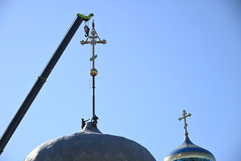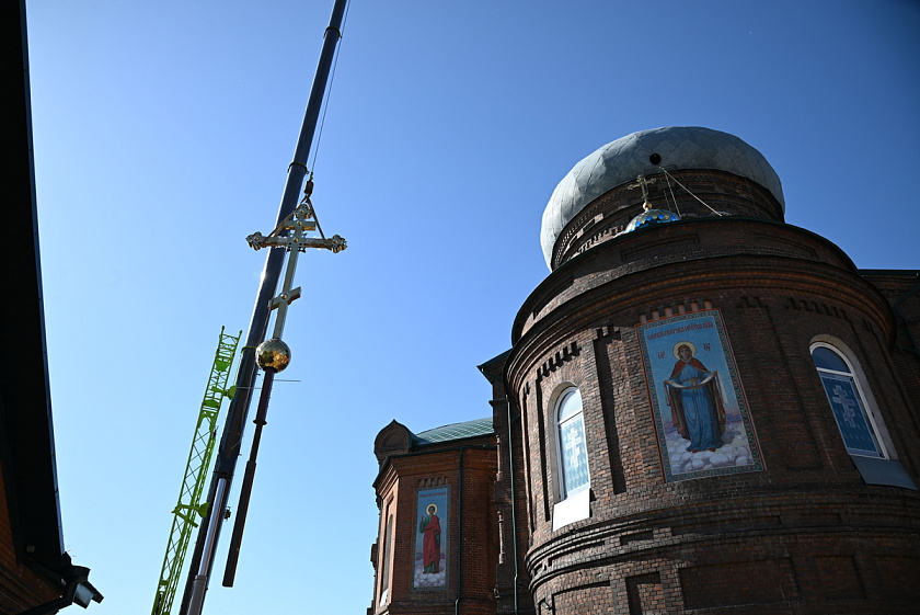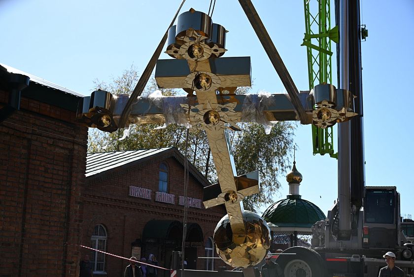 Новый крест воздвигли на главном куполе Покровского кафедрального собора в Барнауле 27 сентября 2025 года, в праздник Воздвижения Креста Господня, в присутствии митрополита Барнаульского и Алтайского Сергия.