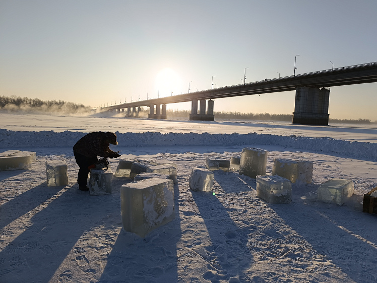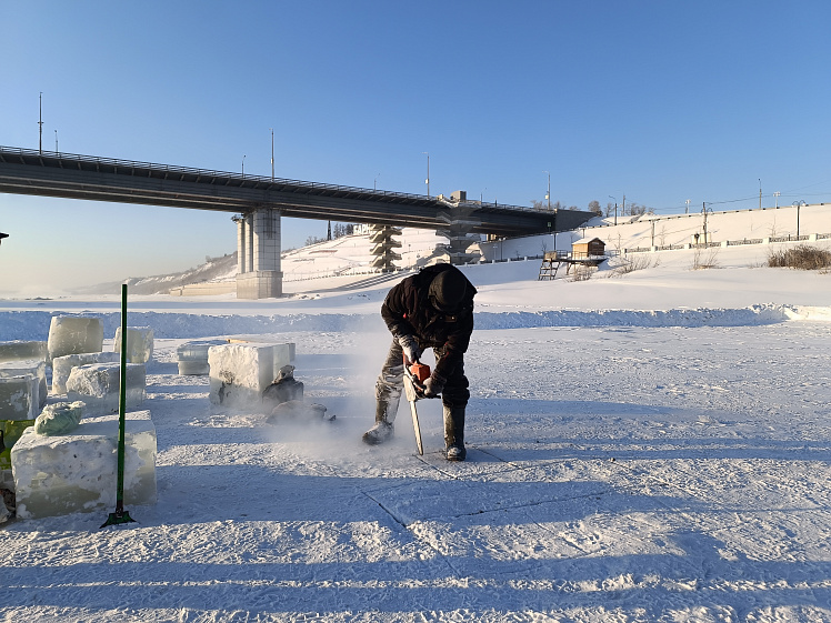 На Оби в районе Нового моста продолжаются работы по обустройству Крещенского городка. 19 января здесь пройдёт молебен, после чего барнаульцы смогут набрать освящённой воды из реки, умыться ею или окунуться в купель.