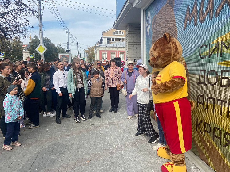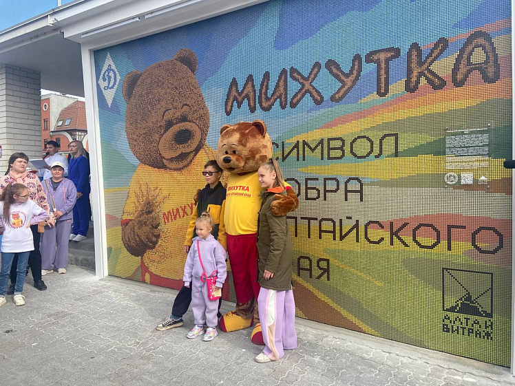Прежде на этом месте находился рисунок с изображением огромного медведя, который был символом проекта «Михутка», самого доброго проекта региона. Однако, поскольку мурал требовал регулярного обновления, его решили преобразовать в мозаику. В создании этого панно приняли участие различные организации и компании, поддерживающие проект и его благородные инициативы. «Вечерний Барнаул» также внёс свой вклад — корреспондент издания добавил несколько фрагментов смальты в композицию.