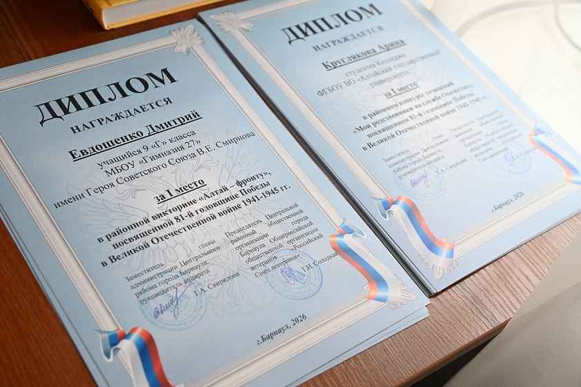 В викторине и конкурсе сочинений ко Дню Победы приняли участие более 70 школьников Центрального района и студенты колледжа АГУ, Барнаульского кооперативного техникума, Алтайского государственного музыкального колледжа. Кроме дипломов победителей представители Межрайонной ФНС России №14 по Алтайскому краю подарили ребятам книги о войне известных писателей.