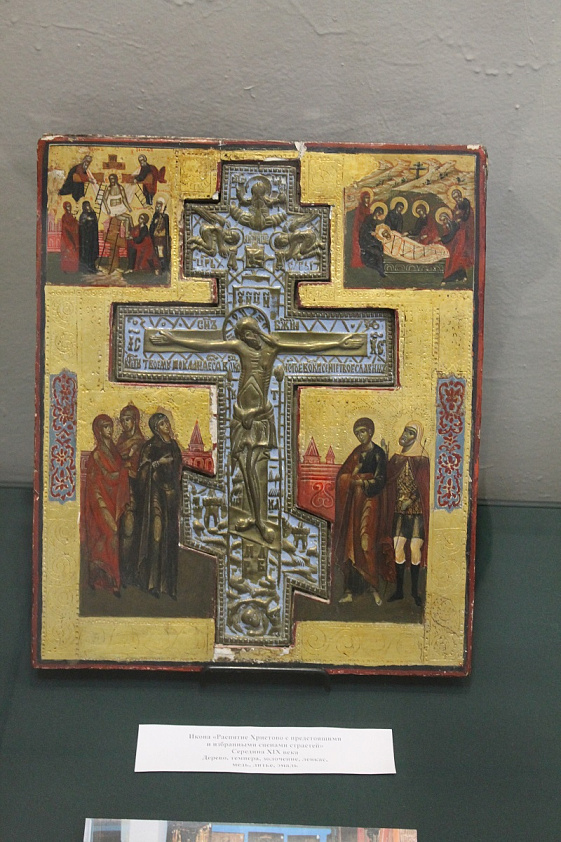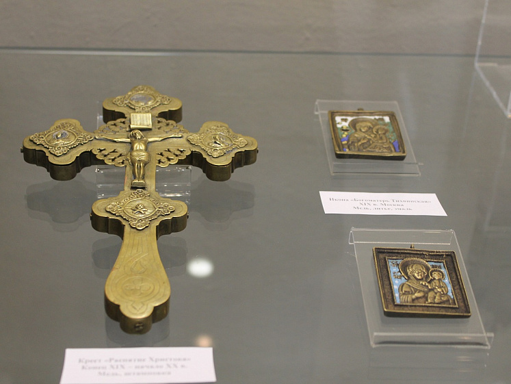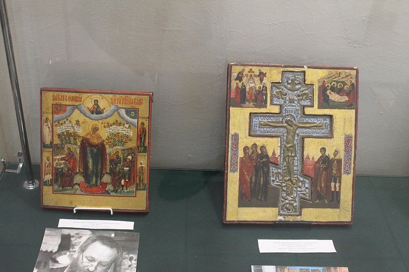 В витринах ГХМАК представлены одиннадцать предметов православного искусства. Среди них — памятники Невьянской иконописи, в том числе и так называемая врезка — произведение с врезанным в доску медным крестом, сочетающимся с живописными образами. Кроме того, здесь можно увидеть ранее не выставлявшиеся медные иконы XIX века московского и поморского происхождения. Двенадцатым и самым древним экспонатом выставки является шедевр книгопечатания — Евангелие XVI века, подлинную историческую и художественную ценность которого помог установить Сергей Москвин.