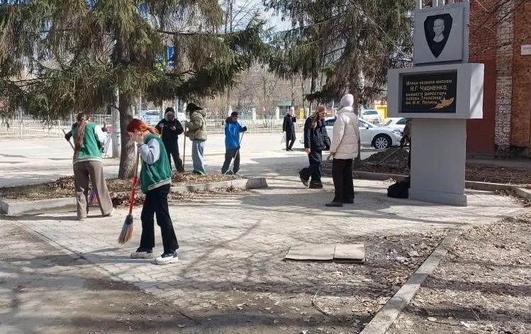 В Индустриальном районе, в микрорайоне Новосиликатный, ученики школы №50 совместно с волонтёрами привели в порядок памятный знак, расположенный на улице Новосибирской, 16в.