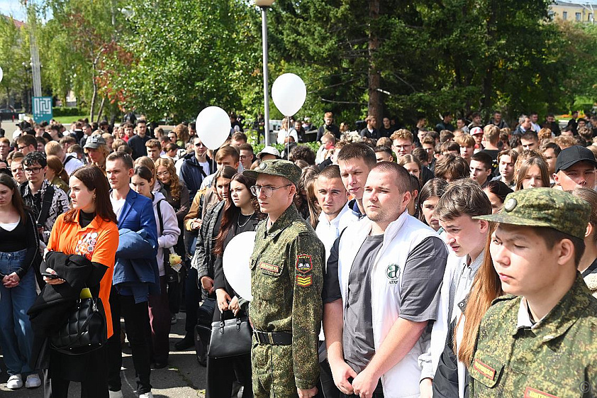 Мероприятие состоялось перед главным корпусом АлтГТУ. В нём приняли участие председатель комитета АКЗС по спорту, культуре и молодёжной политике Татьяна Ильюченко, заместитель министра образования и науки Алтайского края Галина Синицына, исполняющий обязанности начальника Управления молодёжной политики и реализации программ общественного развития Алтайского края Никита Свиридов, председатель комитета по делам молодёжи администрации города Барнаула Александр Штебнер, председатель регионального отделения «Движения Первых» Ирина Рыбина, руководитель Государственного фонда поддержки участников СВО «Защитники Отечества» Лариса Панфилова, врио ректора Барнаульской духовной семинарии иерей Анатолий Бочкар.