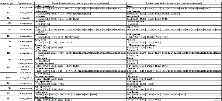 С расписанием автобусов можно ознакомиться в прикреплённом файле.