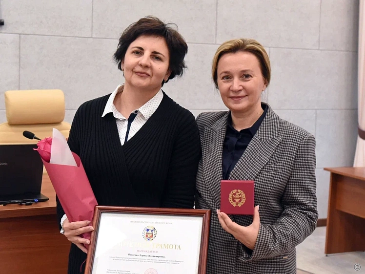 Награды вручили заместитель главы администрации Барнаула, руководитель аппарата Оксана Финк и заместитель председателя комитета по бюджету, налогам и финансам Барнаульской городской Думы Юрий Ряполов.
