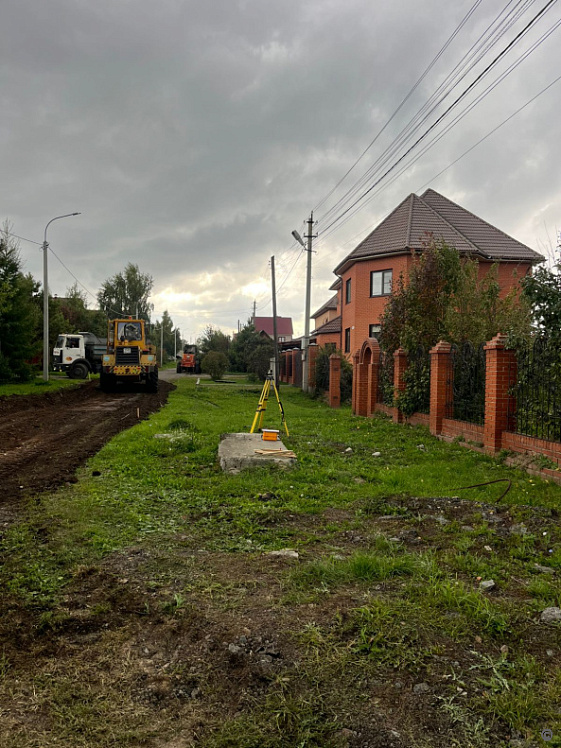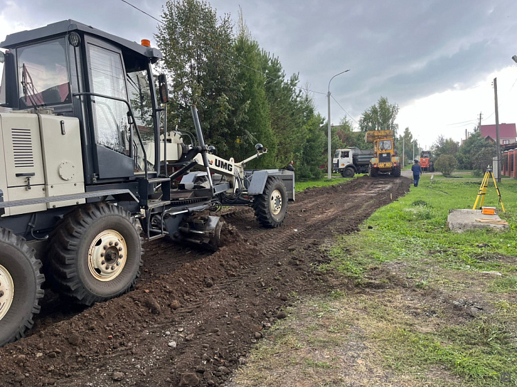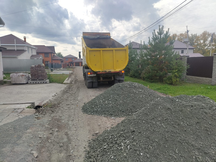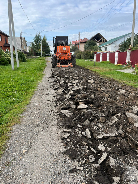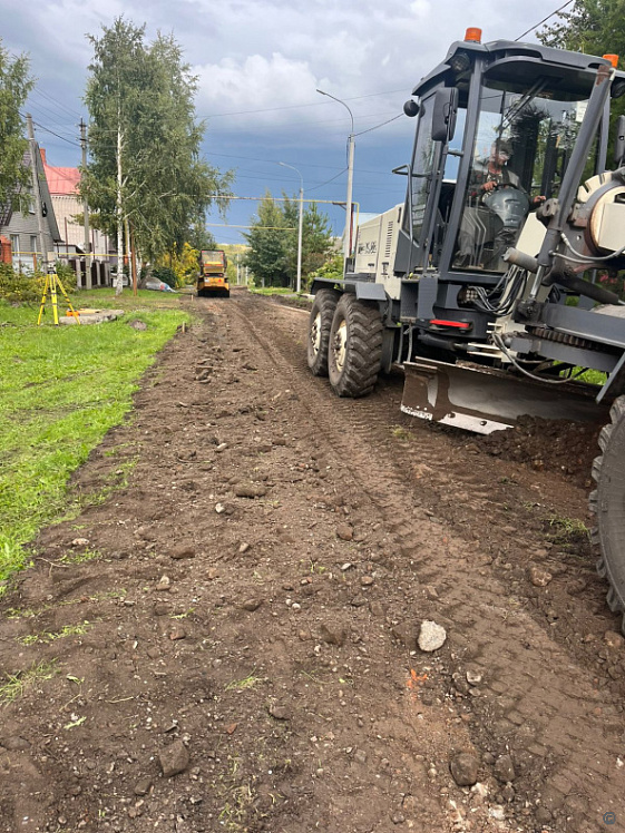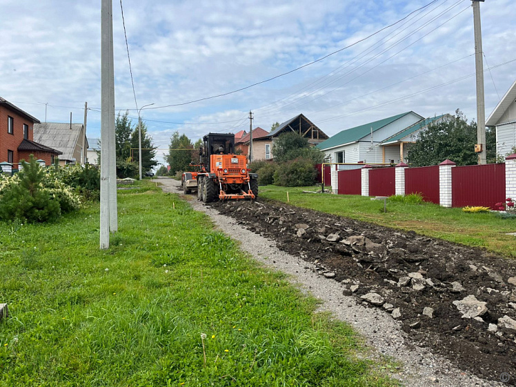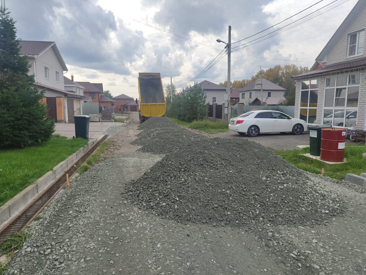 13 сентября на улице 1-й Ореховой рабочие проводят выемку грунта и планировку основания. На улице Черничной делают основание и покрытие из щебеночно-песчаной смеси.