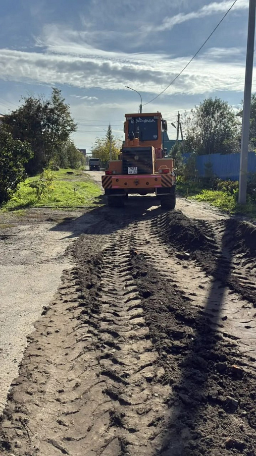 В поселке Казённая Заимка продолжаются работы на улице 1-й Ореховой от дома №1а до улицы Соколиной. На данном участке ведется отсыпка основания из щебеночно-песчаной смеси, которая станет подготовкой для укладки асфальтобетонного покрытия.